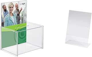 SIGEL VA150 Boîte à donations en acrylique, porte-affiche pour A4, 22,5 x 31 x 17 cm, transparent & TA212 Présentoir incliné de table, 21,5 x 15 x 6,5 cm, acrylique transparent