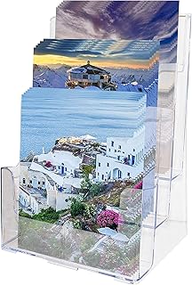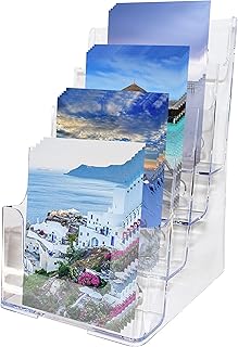 Porte Prospectus Acrylique Multi Niveaux (Taille 4xA5)- Flyers Niveaux pour Présentoirs de Table ou Mural - Support Transparent pour Dépliant, Menu, Livre de Cuisine, Brochure -2 Trous pour Montage