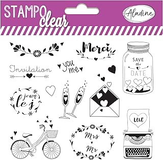 Aladine - Stampo Clear Mariage - Tampons Transparents Créatifs - DIY et Scrapbooking - Placement Précis des Motifs - Planche de 12 Tampons en Silicone