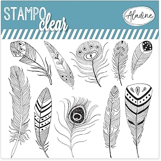 Aladine - Stampo Clear Plumes - Tampons Transparents Créatifs - DIY et Scrapbooking - Placement Précis des Motifs - Planche de 10 Tampons en Silicone