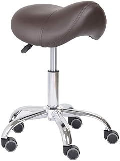 GOLDFAN Tabouret de Selle Tabouret de Bureau Tabouret Rotatif Réglable en Hauteur Tabouret de Travail avec Roues pour Le Bureau Le Salon de Coiffure l'hôpital, Marron