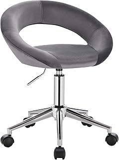 WOLTU BS100dgr,1 Chaise de Bureau Tabouret Roulant avec Velours Assise,Tabouret de Travail Fauteuil de Bureau pivotant et réglable,Gris Foncé