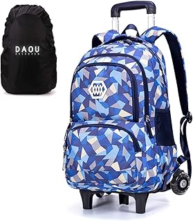 Housse Réfléchissante Offerte Trolley Bag 2 en 1 Sac à Dos Camouflage avec Roulettes Cartable à Roulette Bagages Cabine Loisir Voyage Enfant Garcon Ecole Primaire Secondaire 32*48*19cm 6 Roues Bleu