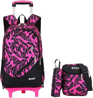 Trolley Bag Rentrée Scolaire Sac à Dos avec roulettes Cartable Roulette Bagages Cabine Loisir Voyage Fille Garçon 6 Roues, Rose Rouge