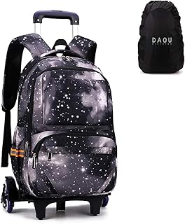 Housse Protection Offerte Cadeaux Scolaire Trolley Bag Fille Garcon Sac à Dos avec roulettes Cartable Roulette Bagages Cabine Voyage Galexy Sac à Dos Enfant Scolaire Ciel Etoile Noir