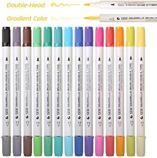 ZJchao 12 Couleurs Ensemble de Stylo Aquarelle Double Pointe Avec Pointe Brosse En Nylon Souple Pour des Livres de Coloriage, Calligraphie, Dessin et d'Écriture