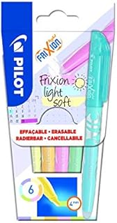 PILOT FriXion Light Soft Lot de 6 surligneurs effaçables Rose pastel, jaune, violet, bleu, orange, vert