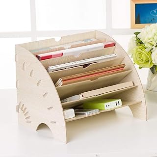 Organisateur de bureau carré en bois | Papeterie de bureau et stockage de documents | Organisateurs de fichiers et magazines A4 | 13 compartiments | Porte-crayon | Pukkr