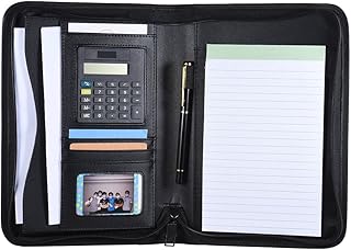Aibecy Porte-documents A5 en cuir synthtique Bloc-notes avec calculatrice et fermeture clair avec de nombreux compartiments multifonctions Business Porte-documents confrencier Portefolio documents
